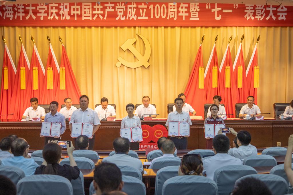 会上,校党委副书记、校长宁晓明宣读了省委教育工委、连云港市委有关我校“两优一先”评选表彰对象名单,《中共江苏海洋大学委员会关于表彰先进基层党组织、优秀共产党员、优秀共产党员标兵和优秀党务工作者的决定》以及《中共江苏海洋大学委员会关于公布“最佳党日活动”和特色党支部评选结果的通知》。