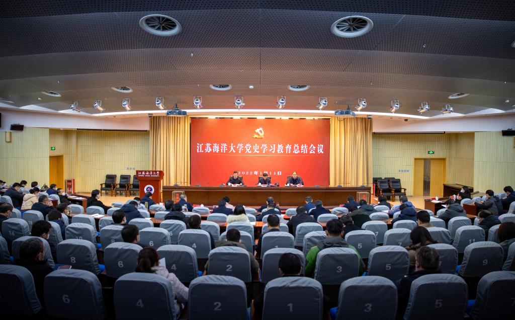 1月14日下午,我校在会议中心黄海厅召开党史学习教育总结会议。省委教育工委党史学习教育派出第六指导组副组长李振陆等出席会议。校党委书记、校党史学习教育领导小组组长王自力代表学校党委作党史学习教育总结报告。校长宁晓明主持会议。
