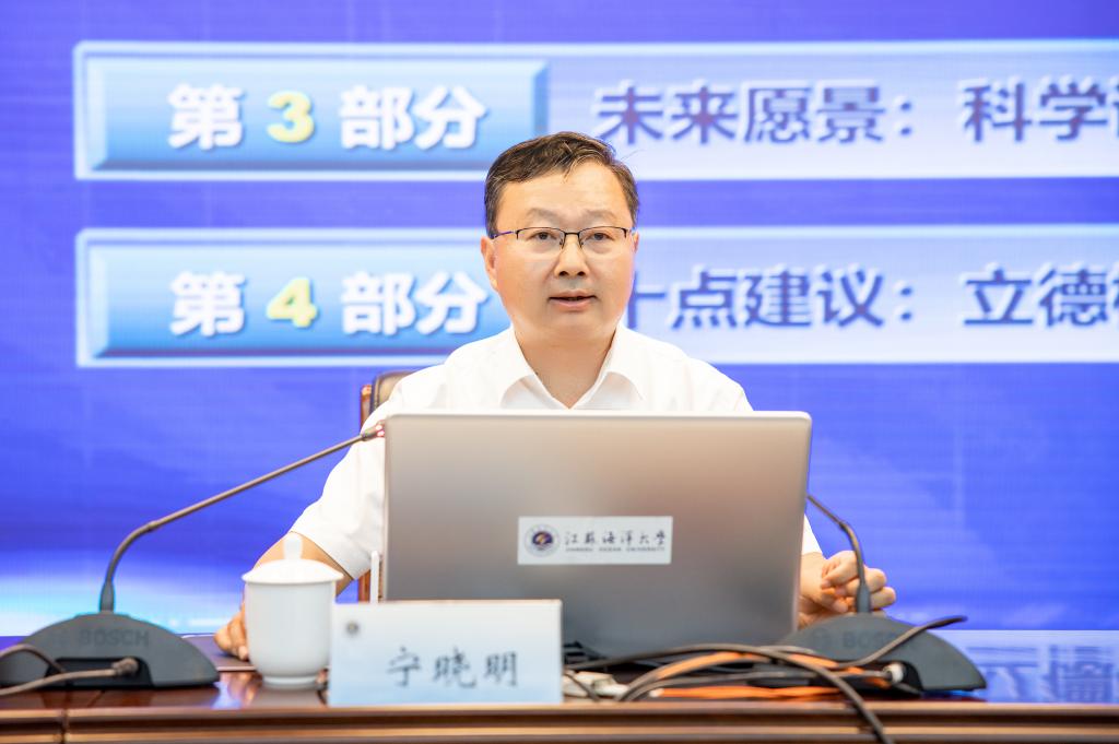 “开学第一课”以校史校情赓续奋斗精神。宁晓明带领同学们回顾学校办学历史、了解学校发展现状、展望学校未来愿景,高度凝练了学校建设发展的各个阶段所蕴涵的奋斗精神,详细阐释了学校在发展目标等八个层面的精准定位,明确描绘了学校“三步走”建设高水平应用研究型海洋大学的发展愿景。知校史、明校情,方能笃学致远,学校的发展史让2022级新生明确自身使命,定将赓续奋斗精神,在建设海洋强国中贡献青春力量。