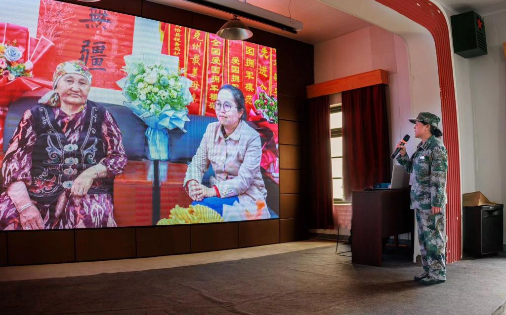 活动中还邀请了乌恰县吉根乡“护边光荣”爱国主义教育基地义务讲解员、江苏省优秀大学毕业生刘晶晶现场讲述了人民楷模布茹玛汗·毛勒朵半个多世纪放牧巡边在祖国最西端的感人事迹。在动情的讲解中,在场的师生们再一次接受了思想淬炼、爱国主义的精神洗礼。