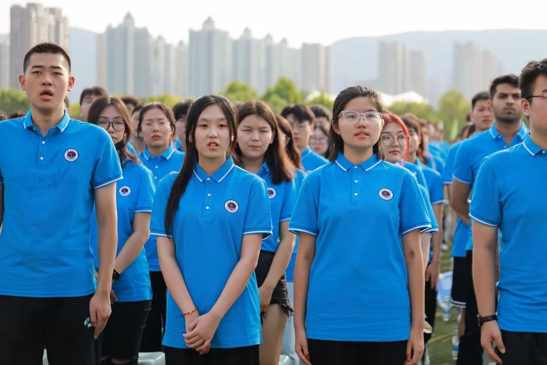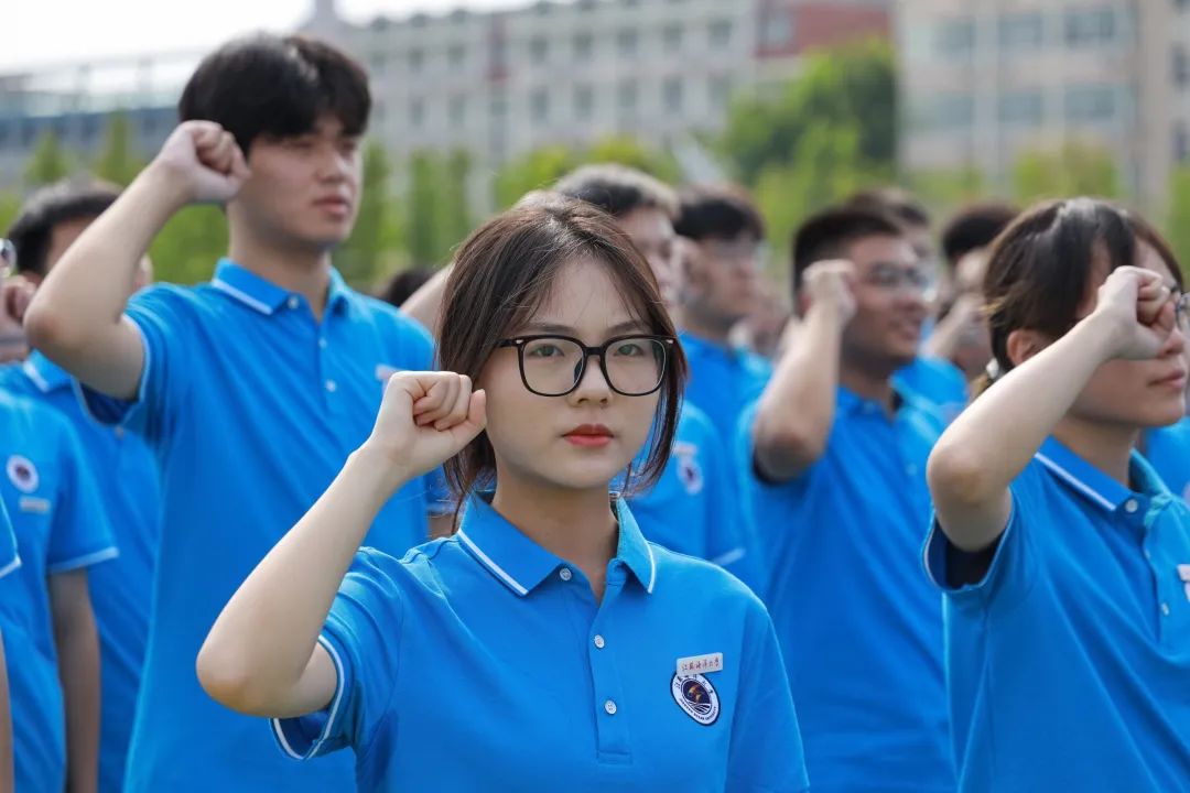 校学生会执行主席孔令洲带领新生进行入学宣誓