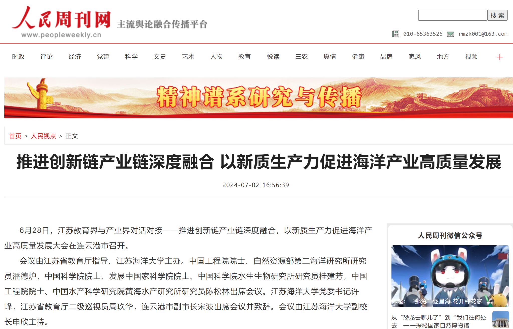 6月28日,江苏教育界与产业界对话对接——推进创新链产业链深度融合,以新质生产力促进海洋产业高质量发展大会在连云港市召开。